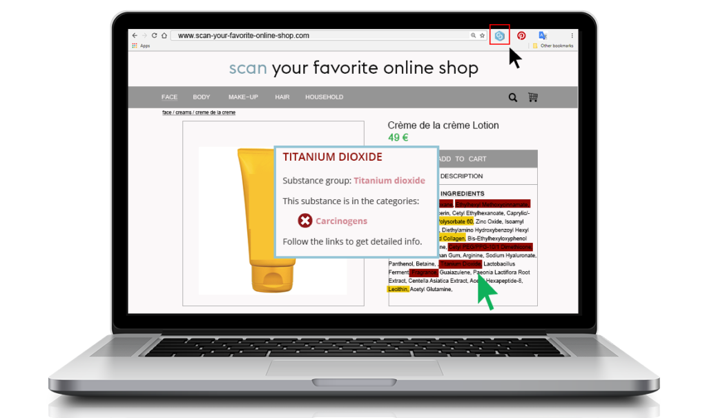 The scanner highlights ingredients of concern on content lists, so you can avoid them easily.